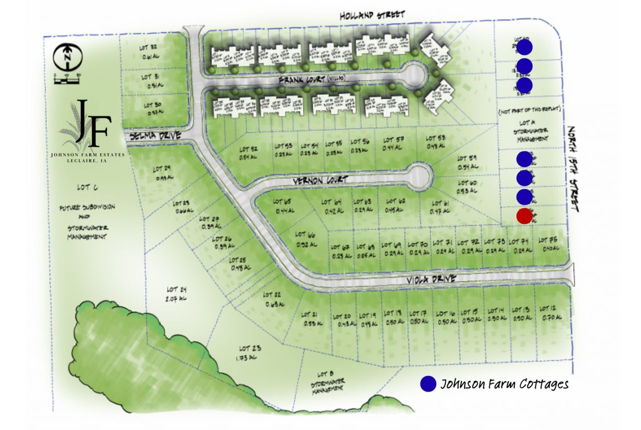 Exciting News! Aspen Homes is now offering their award-winning Villa floor plan as a single-family home in Johnson Farms. The Johnson Farm Cottage is starting in the 300's with slab foundation, the additional options include full basement both finished or unfinished, 4-season room, covered rear porch and 3 stall garages. This beautiful blend of tradition and modern finishes features 2-3 bedrooms, 2-3 full baths, 9' ceilings and luxury plank flooring. You'll love the open concept, desirable kitchen that includes quartz counter, stainless appliances. You'll appreciate the 20x24 Zero Step entry from garage leading to the spacious rear entry, bench with coat hangers. Standard Pella double hung windows throughout. Optional lawncare & snow removal services offered. LeClaire has much to offer with nearby walking trails, parks, YMCA 2026 convenient grocery store and Pleasant Valley schools. The downtown area is full of shopping, events, restaurants from fast food to fine dining and endless charm. Please allow 6 months for completion as well as now accepting lot holds. Slab cottages range 1,350-1,518 sq ft / Foundation cottages range 1,350-1,518 on main with option to finish additional 833-1,001 in lower level. **See Model Home at 6 Frank Court, LeClaire, IA**